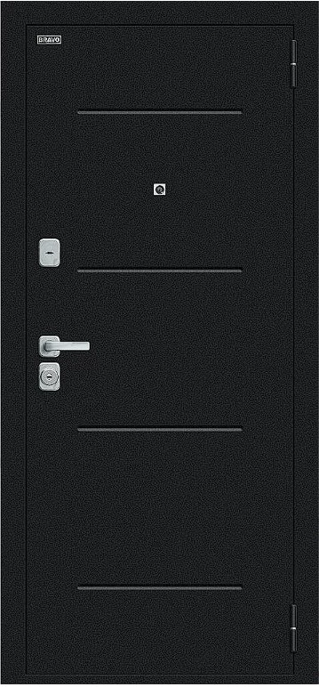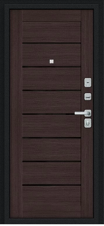 Надежная входная Дверь Браво Техно/BChrome Букле черное/Wenge Melinga премиум класса по цене 30 500 руб. Большая толщина стали защитит от проникновения в ваш дом, квартиру или коттедж. Используется очень качественная фурнитура: замки, цилиндры, ручки, защелки. Покрытие и отделка двери изготовлено под внимательным контролем производителя. Дверь имеет долгий срок службы и гарантию.